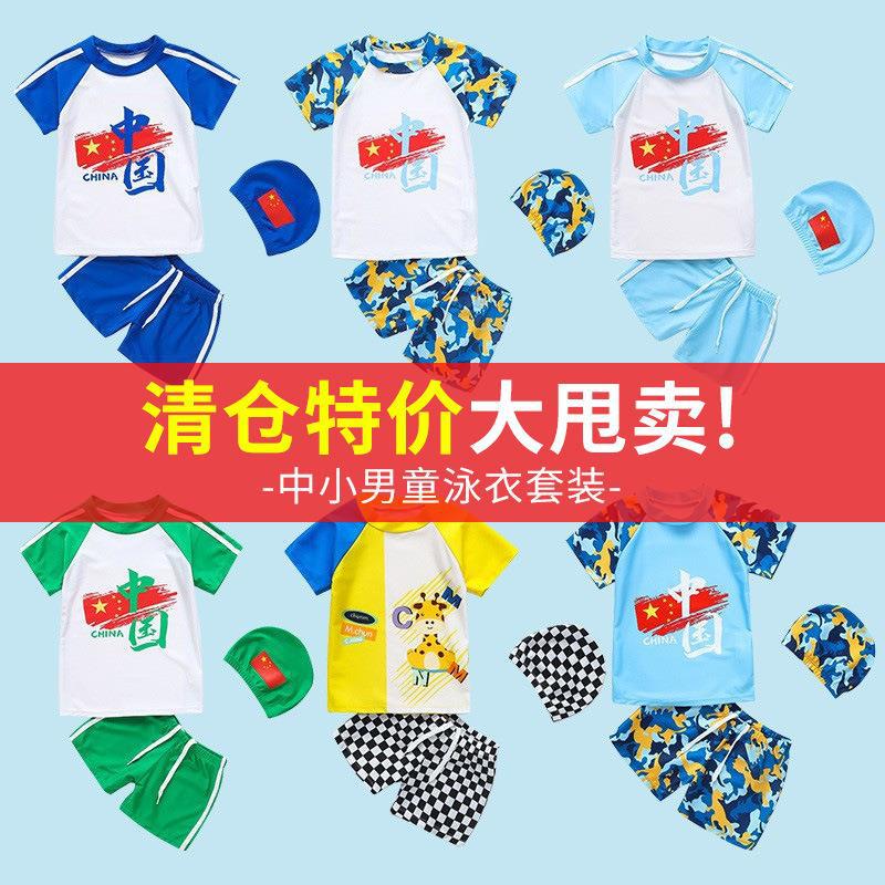 男の子用水着のみ、元の男の子用水着ブティックスプリット水着卸売子供用イエローキリンポリエステル