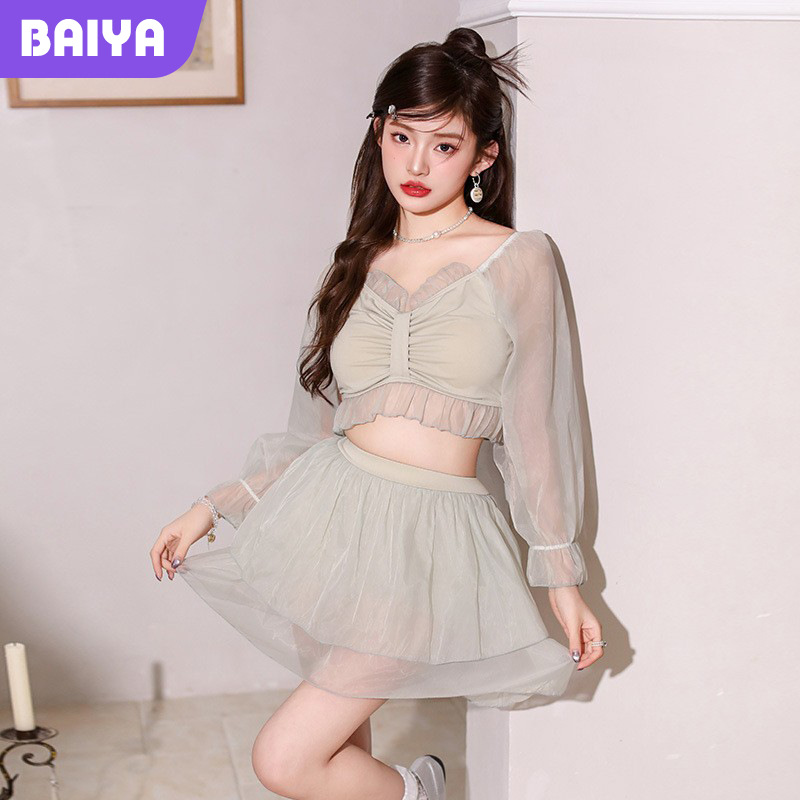休暇水着純粋な欲望スタイル夏の学生水着女性の新しい甘くてかわいい長袖日焼け止め温泉チュチュスカートなし