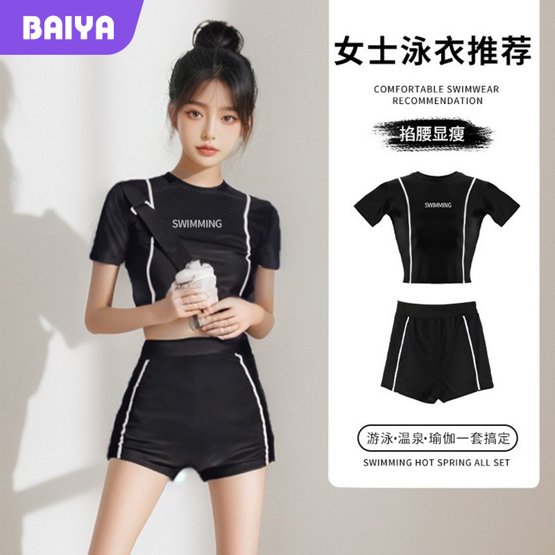 黒シュノーケリングスーツ日焼け止めスプリット水着女性クラゲ速乾性半袖サーフィンショーツ水着スポーツ夏の卸売