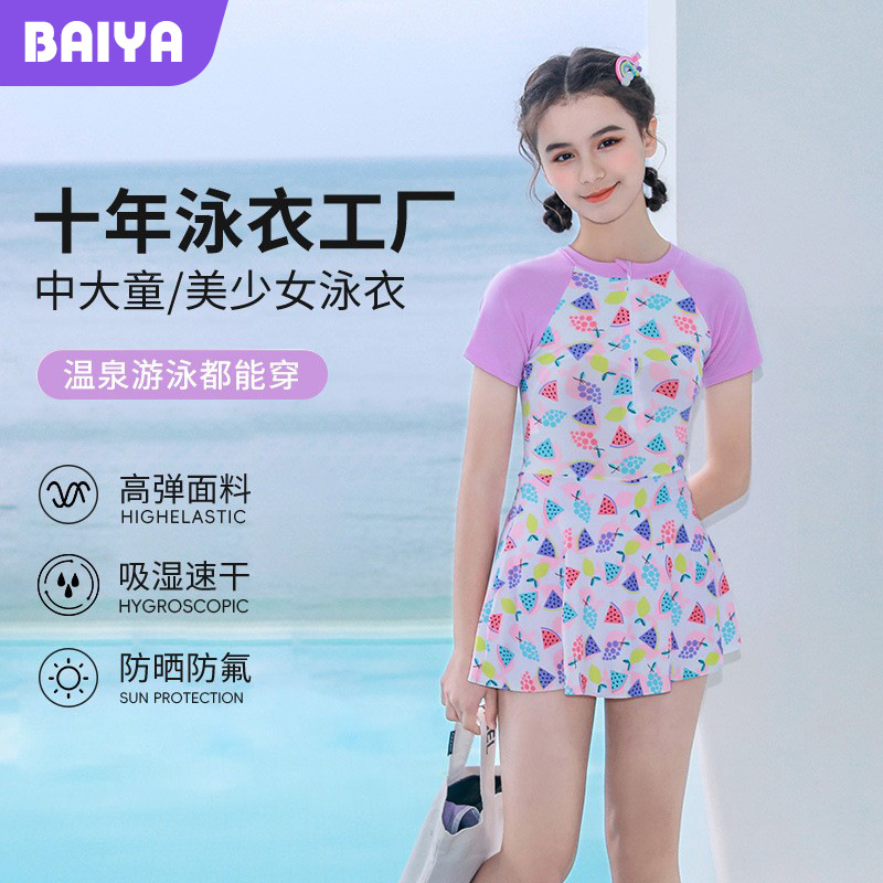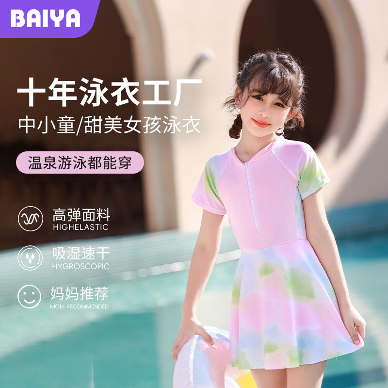 子供スーツ新しい女の子スカートスタイル中型子供ワンピース夏の保守的な水着卸売プリンセスかわいい水泳