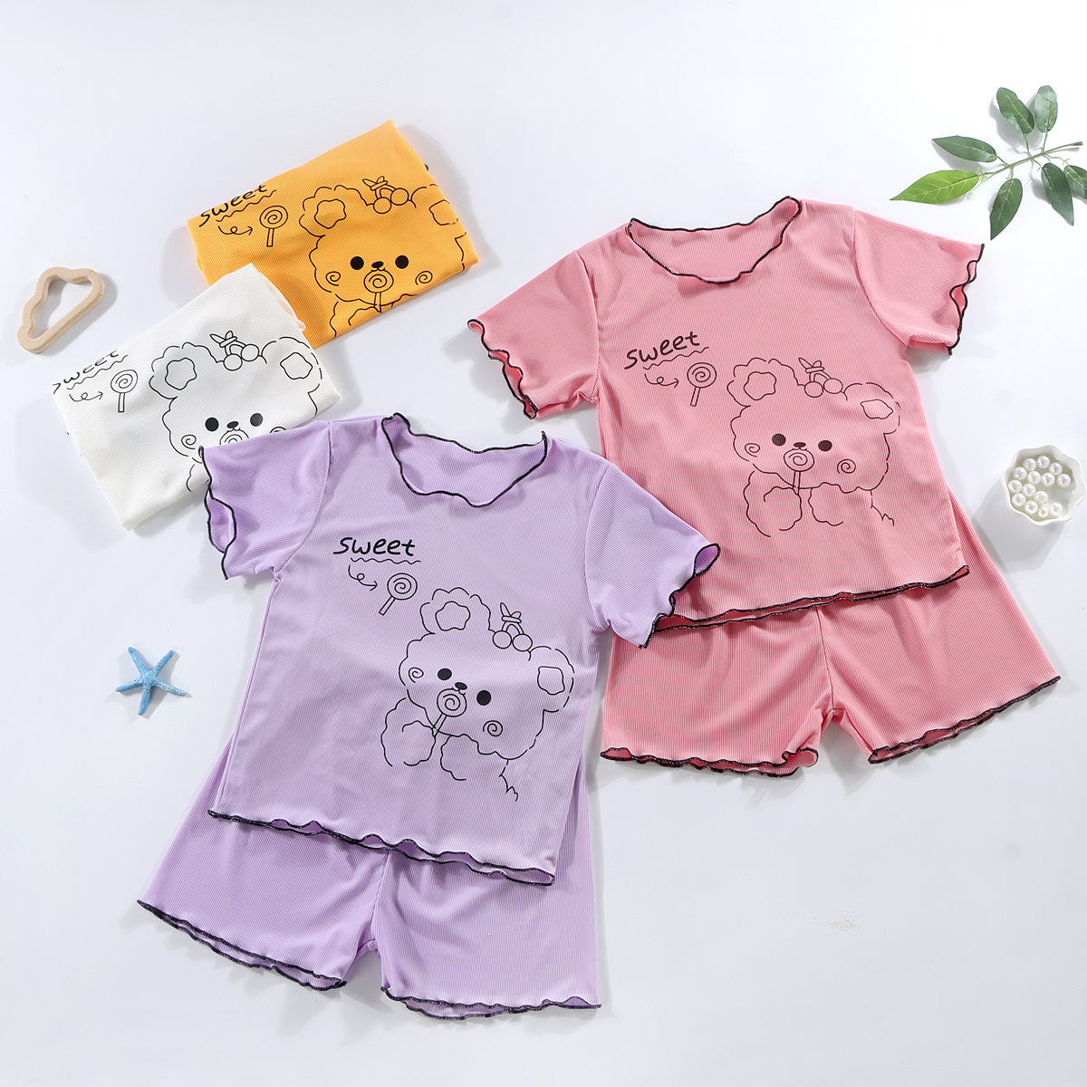 女の子子供用ホーム服ベビー空調服夏カジュアル半袖女の子スーツアイスシルクスタイルスーツ2枚