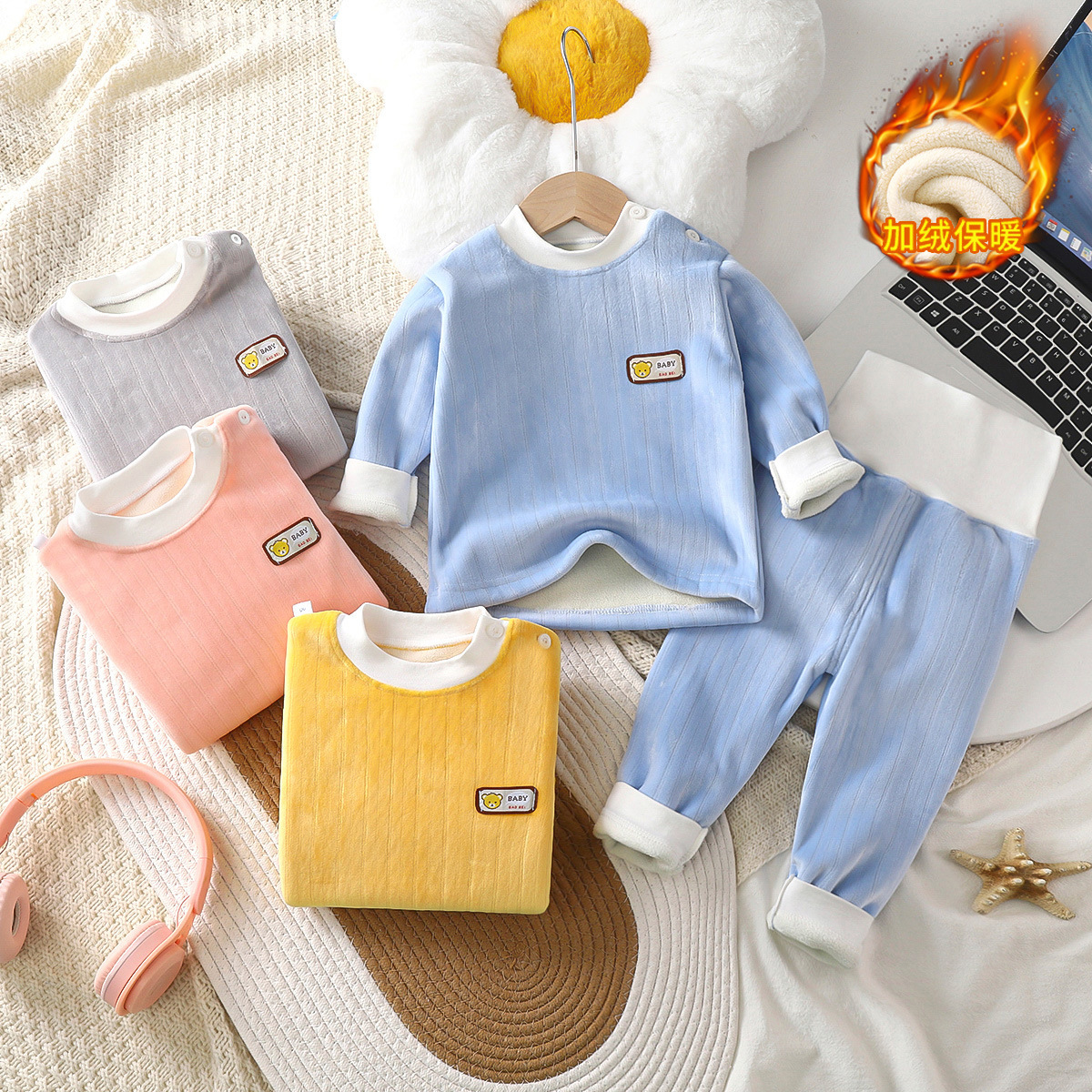 ベビー子供用サーマル下着セット服秋と冬のベビーホーム服プラスベルベット秋服男の子と女の子用秋のズボン厚みのある