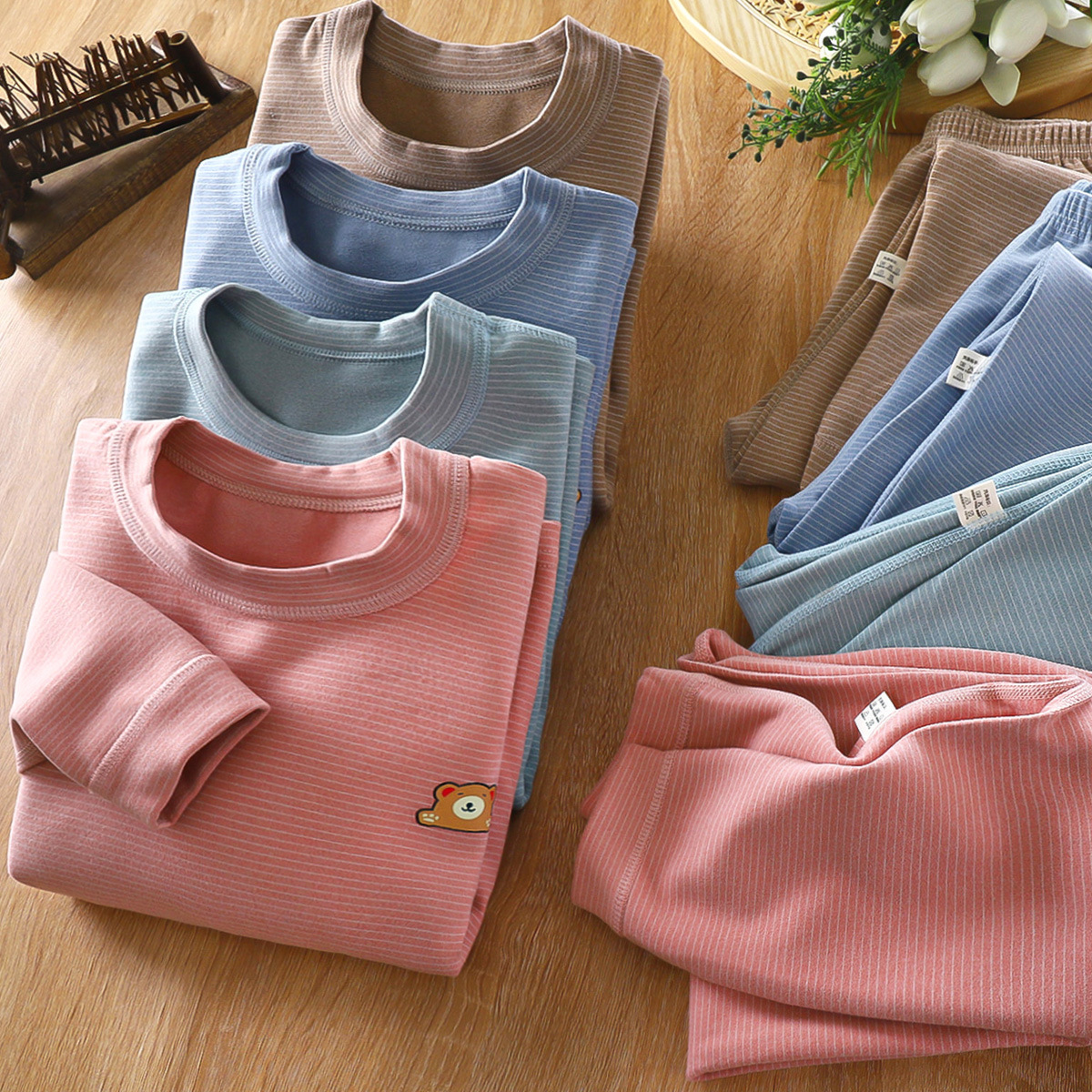 新しいベルベットサーマル下着セット子供用秋服と長ズボンストライプ厚みのあるミッドハイカラー男性と女性のボンレス