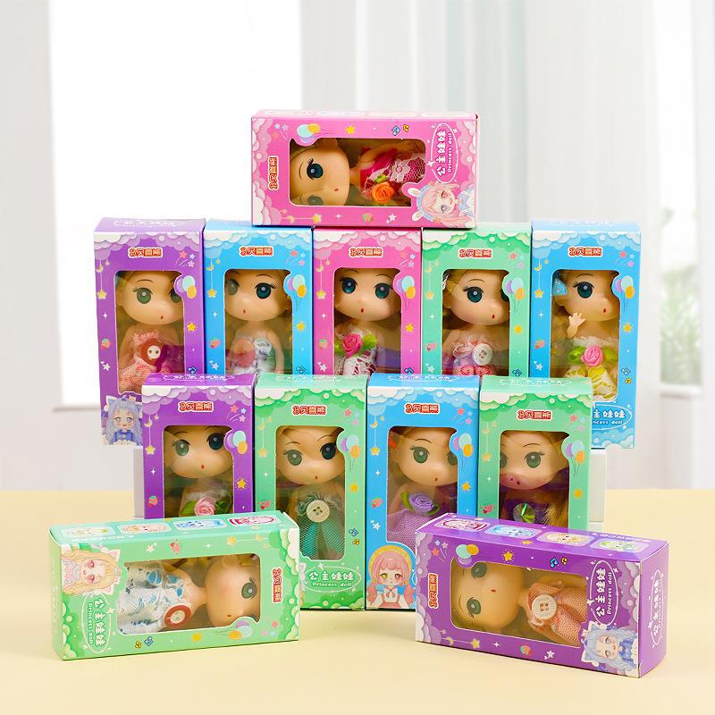 幼稚園の漫画の王女の人形の女の子は人形を交換します。