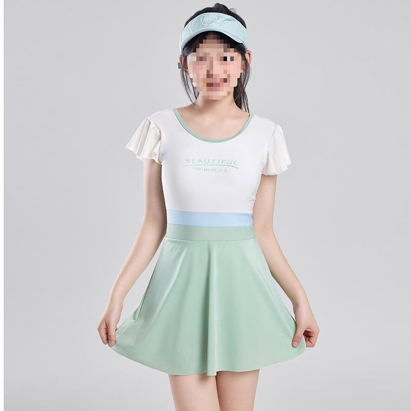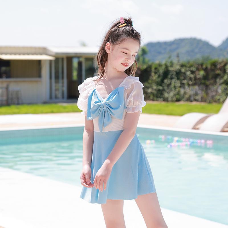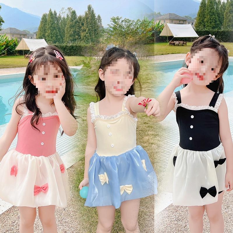 スプリット子供用水着女の子かわいい大きい水着既製ミディスカート韓国風温泉風リボン学生子供ファッション