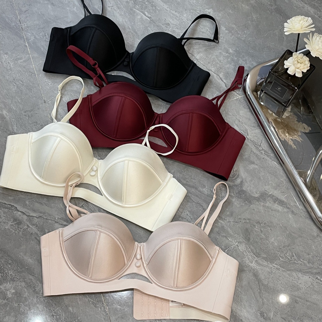 28 中厚下着 レディース ノンワイヤー アッパートップ バイセクション 光沢ブラジャー 小胸プッシュアップブラ アイスシルク たるみ防止 98