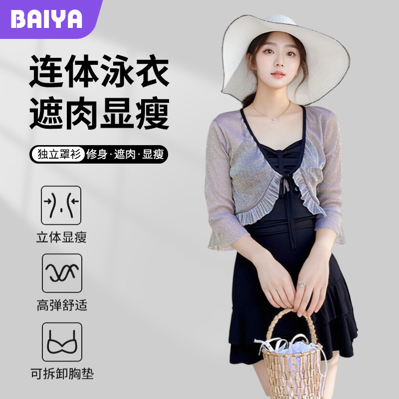 純粋な欲望スタイルの女性用水着、コンサバティブな休暇カバーアップ、ネットセレブの長袖お腹カバー、コンサバティブなベルト痩身コンサバティブな女性用水着