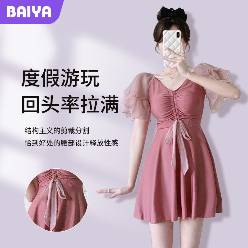 水着、コンサバ温泉ウエストスカート、超妖精Vネックスプリット水着、女子学生着痩せイン、夏のお腹カバー、爽やか