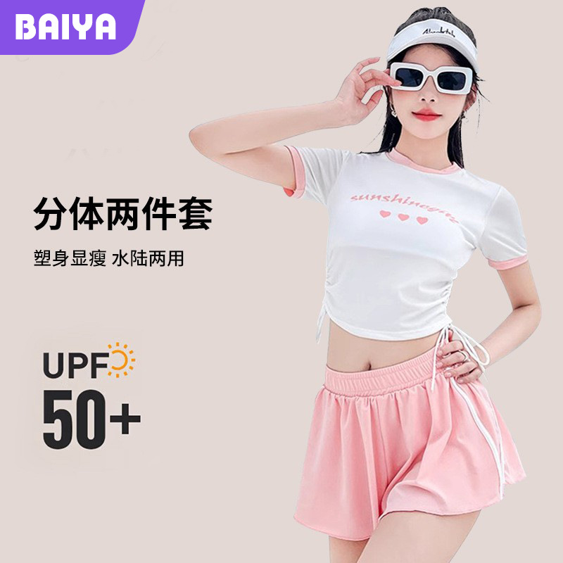 スポーツツーピース学生水着水着レディースホリデーボクサーボーダー痩身2025分割カバー新しいスタイル
