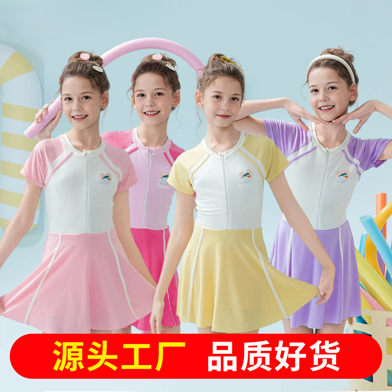 水着子供用スイミングプールワンピース水着新しい保守的な中年子供温泉休暇スポーツスカート 2025 卸売スタイル