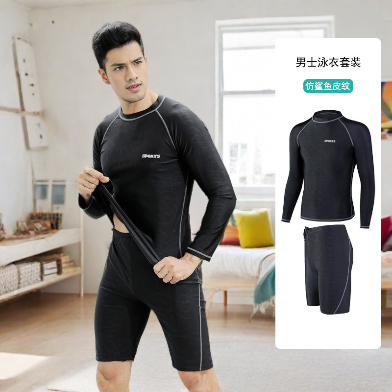 水泳長袖日焼け止め速乾コードレザー模造メンズ水着スーツシャーク新分割大型温泉