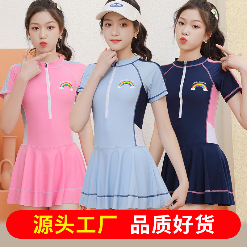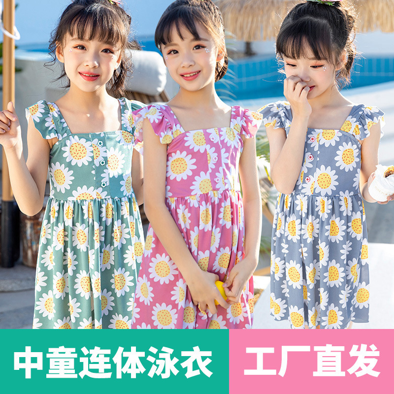 新しいスタイルのスカート、小さな新鮮な夏の女の子の水着、中学生の子供用水着、女の子のワンピース、保守的な女の子の休暇