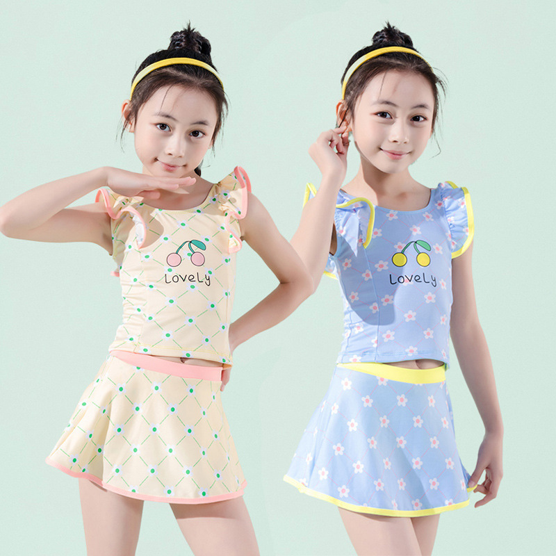 女性用温泉水着、女の子用スプリット水着、52023スタイル、子供用、中学生用、おしゃれでかわいいスカート、韓国水着