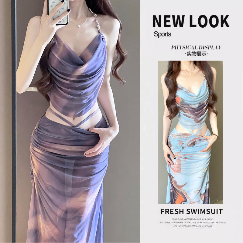 タイロングスカート休暇新しいハイエンド女性のセクシーな2025水着水着カバーアップビキニスリーピーススプリットセット