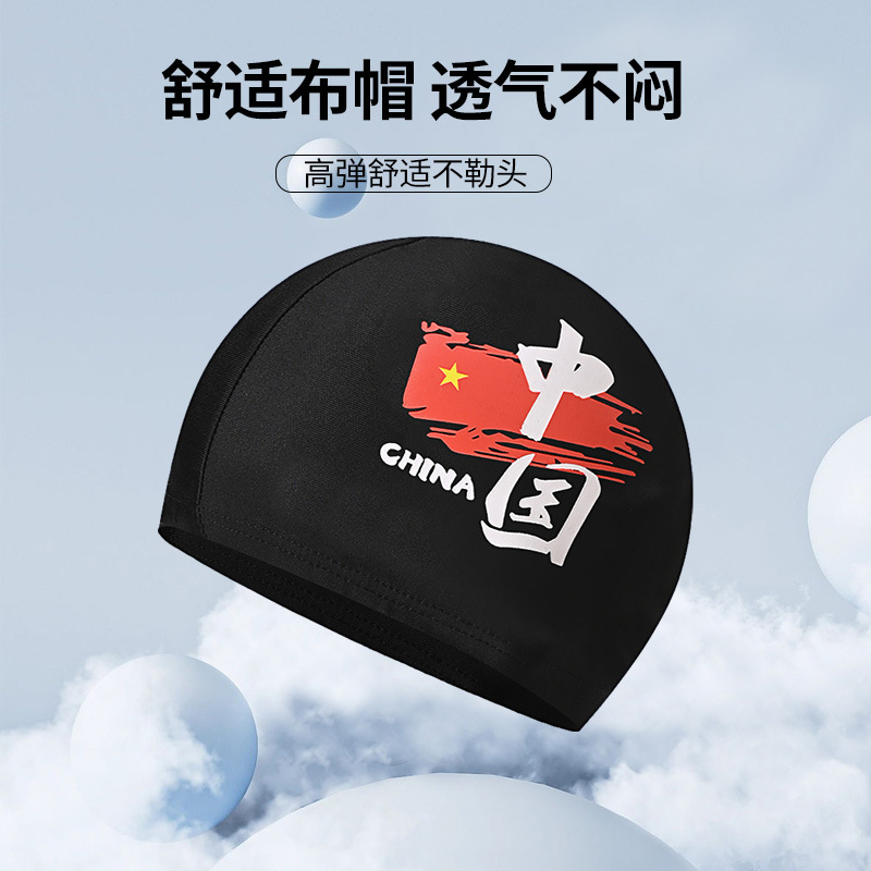 ユニセックスファッション卸売ヘアケア帽子水泳キャップ大人の耳保護布水泳ヘッドバンド水泳キャップしわなし黒