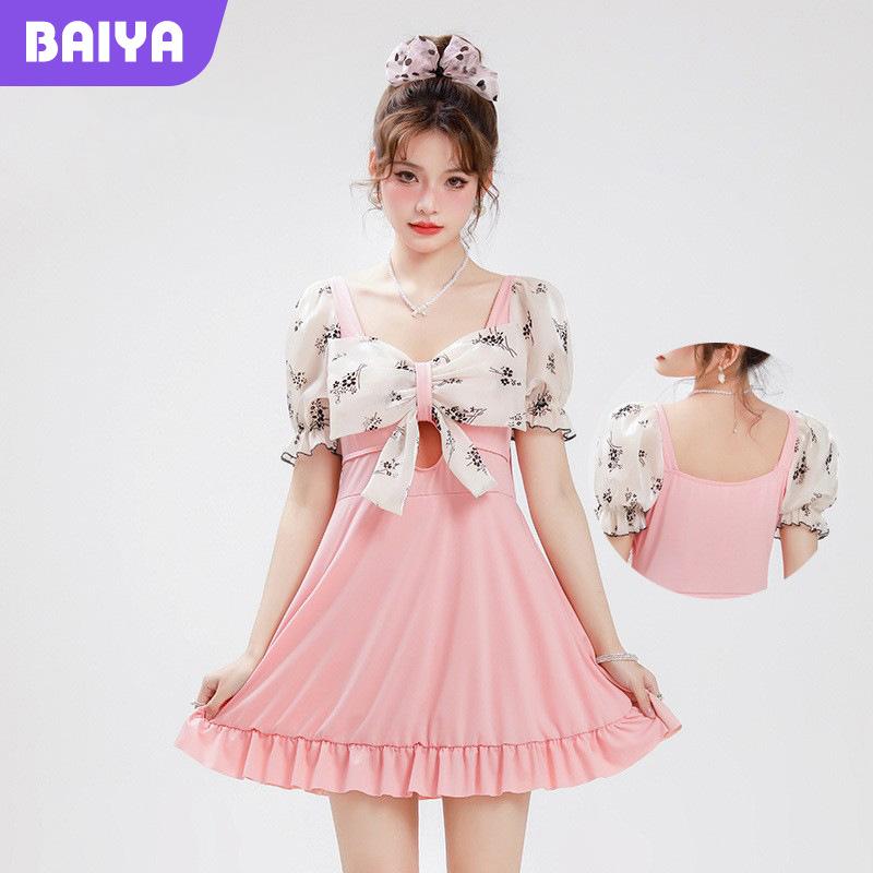 韓国風おしゃれツーピース温泉水着 スプリット水着 小胸プッシュアップ着痩せスカート スポーツレディース水着