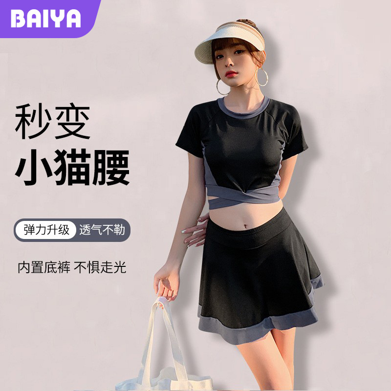水着分割なしおしゃれ女の子小清新温泉スカート水着保守的なボクサー卸売水着2点セット
