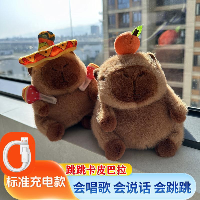 ぬいぐるみの女の子のカピカピカのぬいぐるみのカビー人形のバラのカピバラは枕を抱きます。