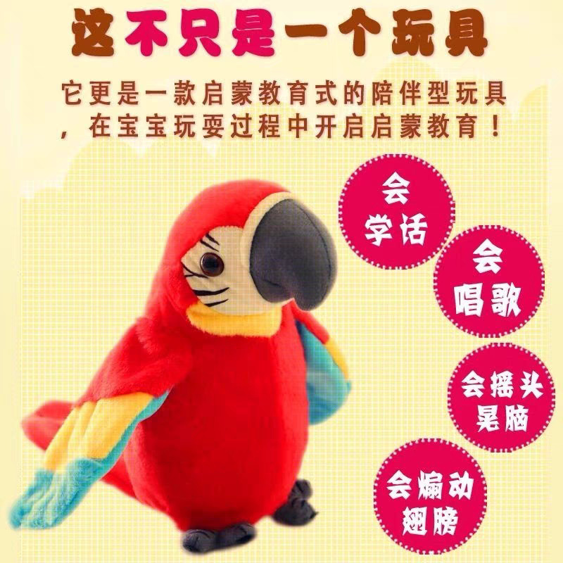 人形鳥録音、歌う、羽ばたき、ぬいぐるみ、クロスボーダー学習、話すシミュレーションオウム電動1個