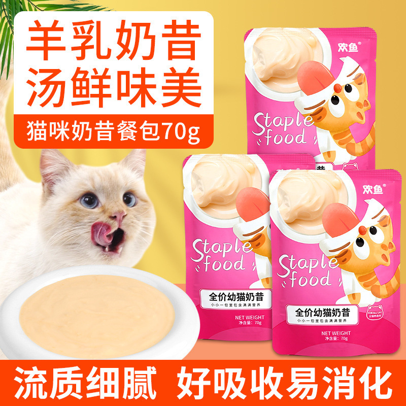 猫の水分補給ハッピーフィッシュミルクシェイク猫ウェットフードチキンミールパック 70 グラム定価ヤギミルク栄養ペットスナック全脂肪