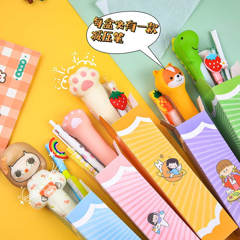 学生創意アニメネット赤盲箱ペンセット子供用筆記具減圧ペン中性筆プレゼント奨励