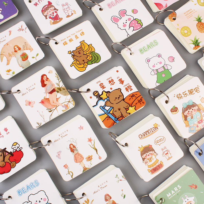 現物リングボタン式英語単語帳ポケット携帯単語カード空白ルーズリーフ付箋ノート