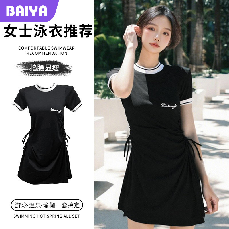 お腹カバー痩身夏新作水着卸売タイトシンプル美背中ヨーロッパとアメリカンスタイルの黒のワンピース水着女性用 2025
