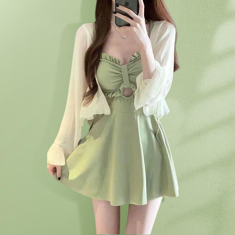 スリムスカート長袖休暇ハイウエストワンピース温泉女性の純粋な欲望水着女性の水着卸売スタイルインスタイル