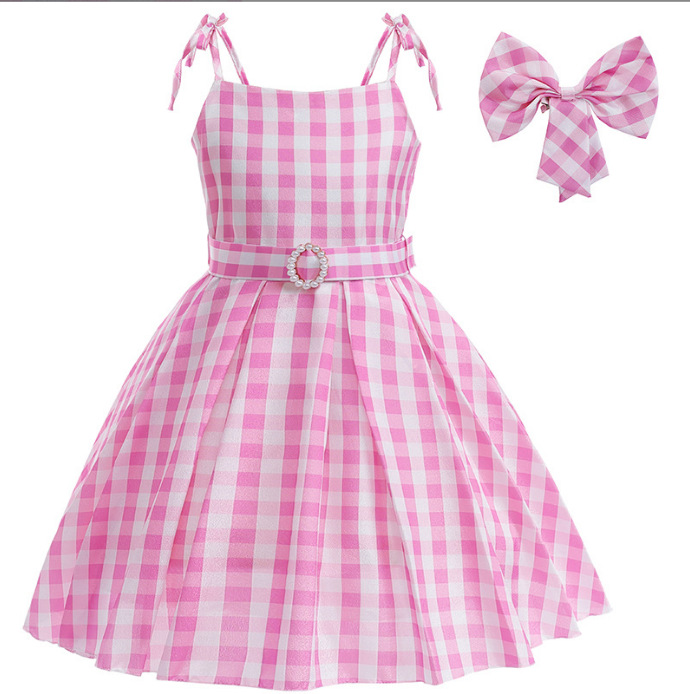 外国貿易新しい女の子サスペンダーチェック柄ウエストドレススカートコスプレリアルバービー映画同じスタイルのプリンセスドレス