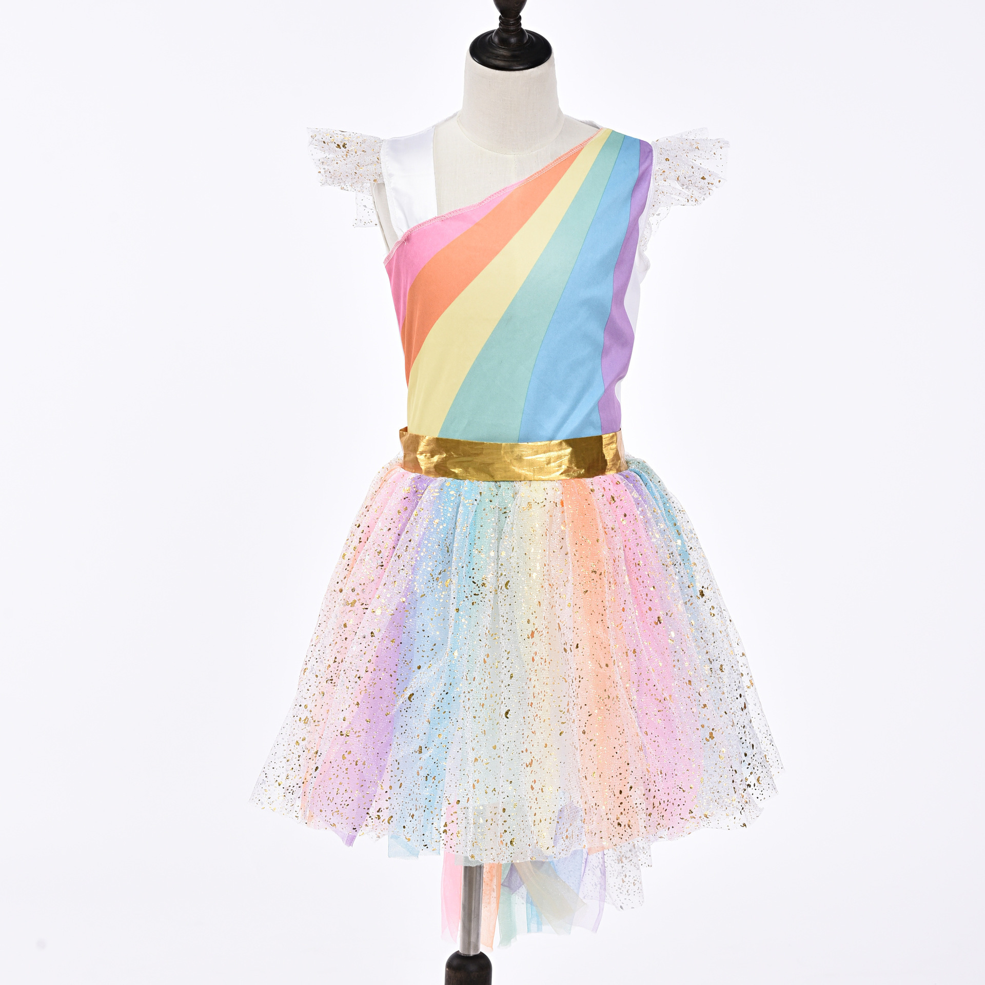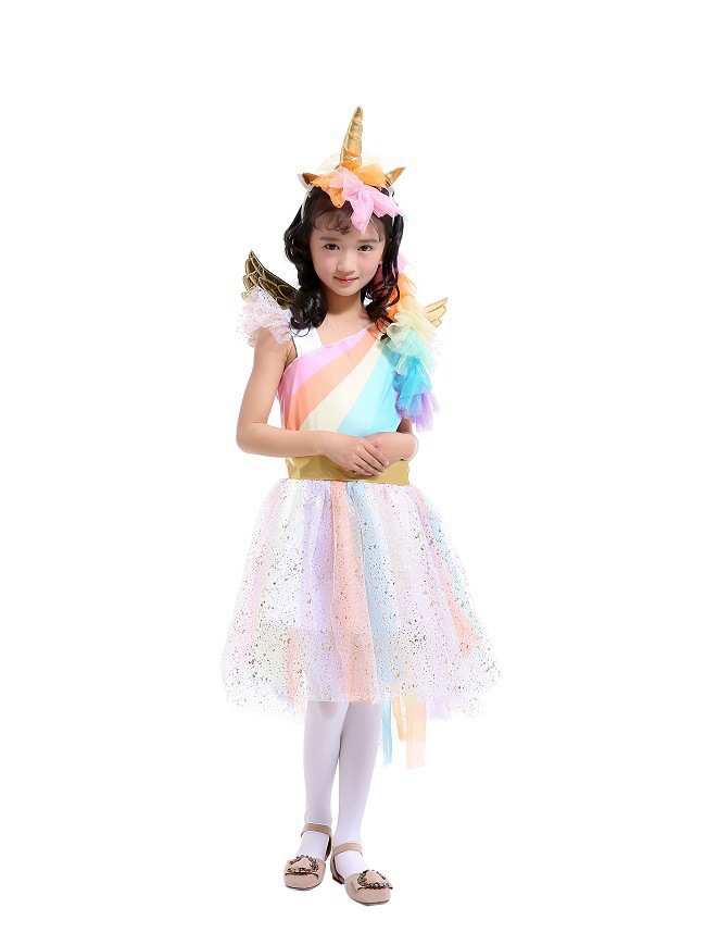 2019新作女の子スカート子供コスチュームユニコーンジャンプスカート舞台演出虹プリンセススカート