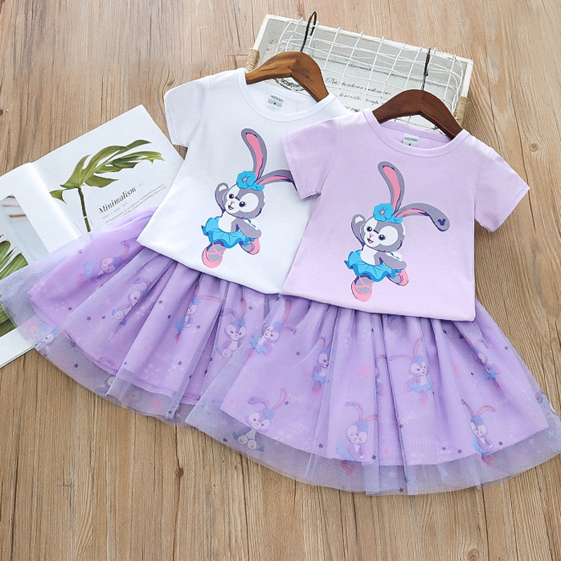 女の子2023種類の洋気セット星黛露アニメ夏半袖綿ネット糸プリンセス風スカート2点セット潮