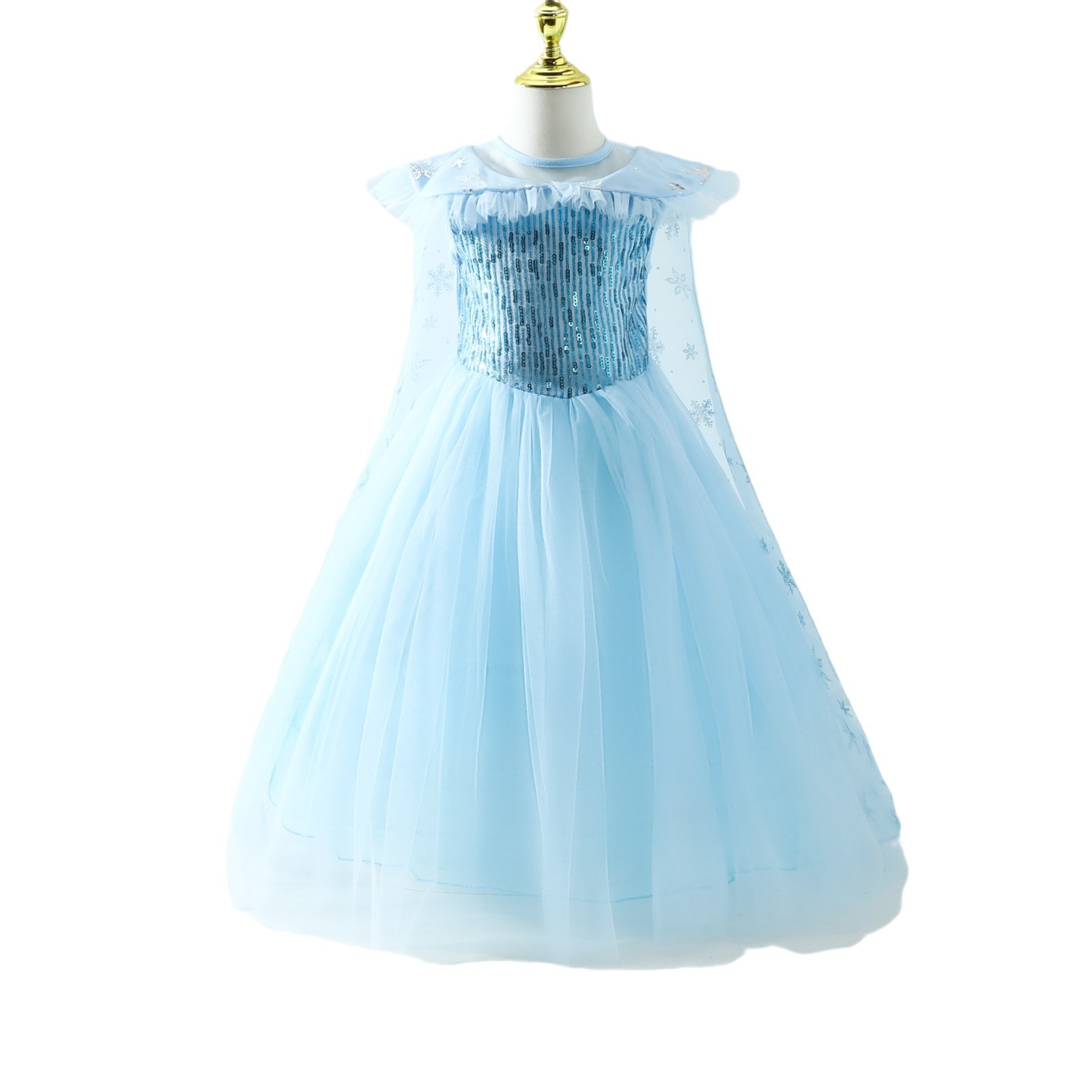 氷雪艾莎の青い艾莎の王女のスカートの夏の愛莎のワンピースの半袖の紗のスカートの艾莎の爆発的なドレス