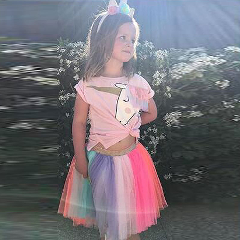 Ins新子供スカート2019夏女の子カラースカート網糸蓬蓬姫スカートユニコーンセット一枚代