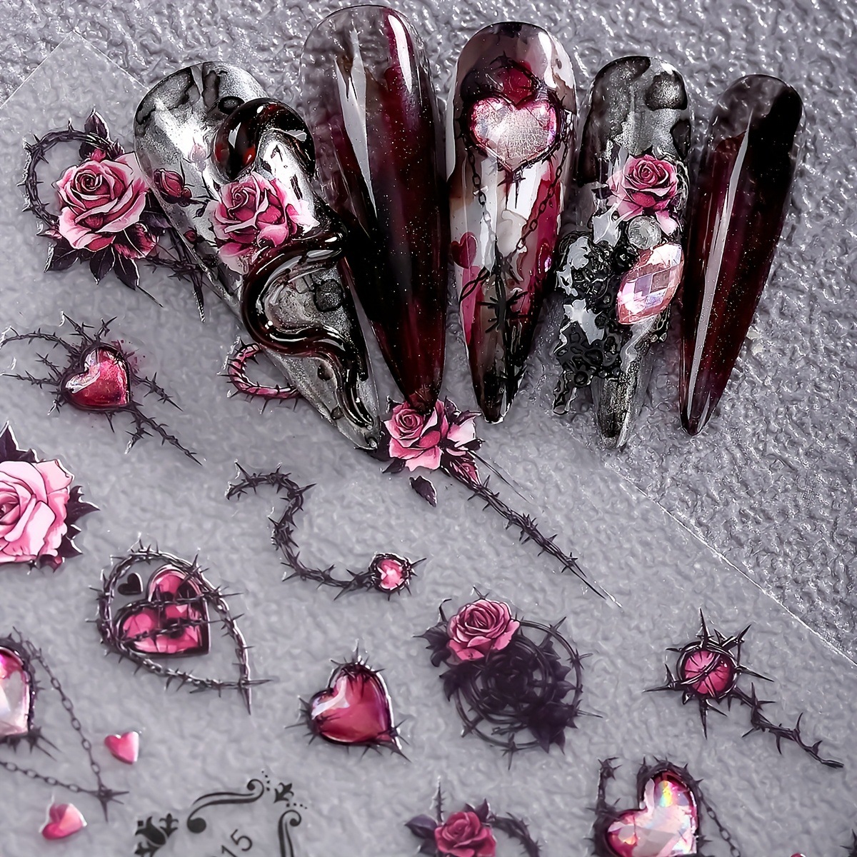 国境を越えて2025年にゴシック風ソフトゴム浮き彫り5D薔薇デカールネイルシールDIY薔薇爪貼り
