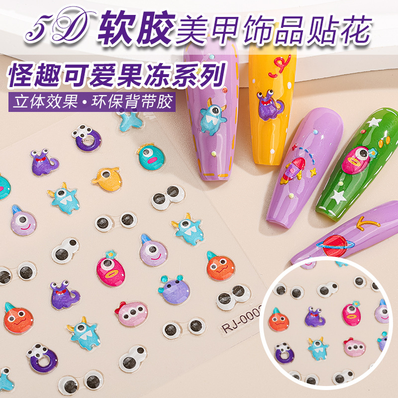 国境を越えて2025年にソフトジェルネイルシールのレリーフ5dinsネット赤夜光DIY児童爪貼り卸売り