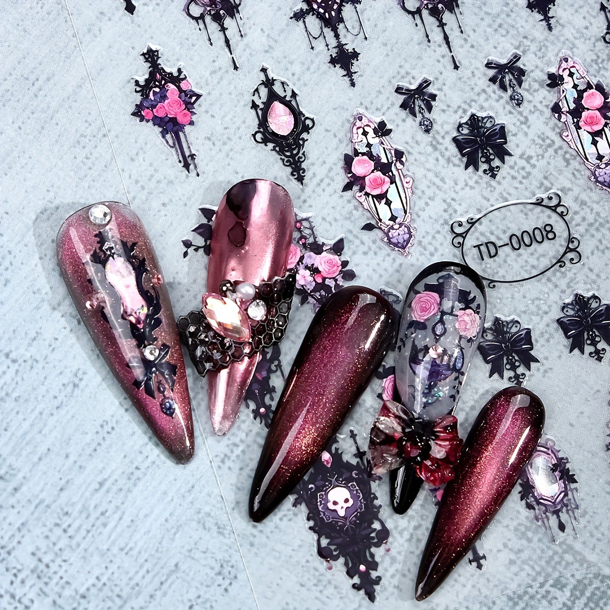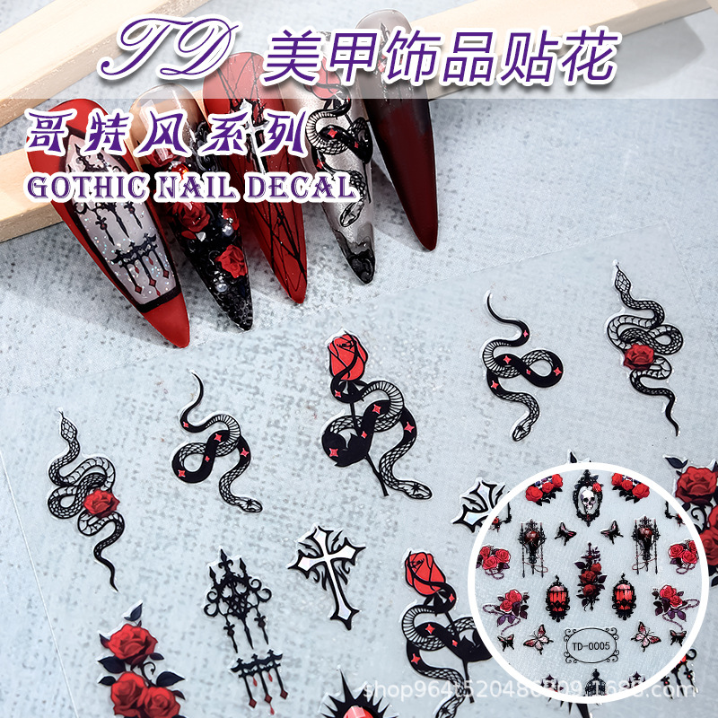 クロスボーダーダーク系ローズゴシック风ソフトジェルステッカー5Dネイルステッカー浮き雕りDIYハロウィン爪ステッカーインスタ
