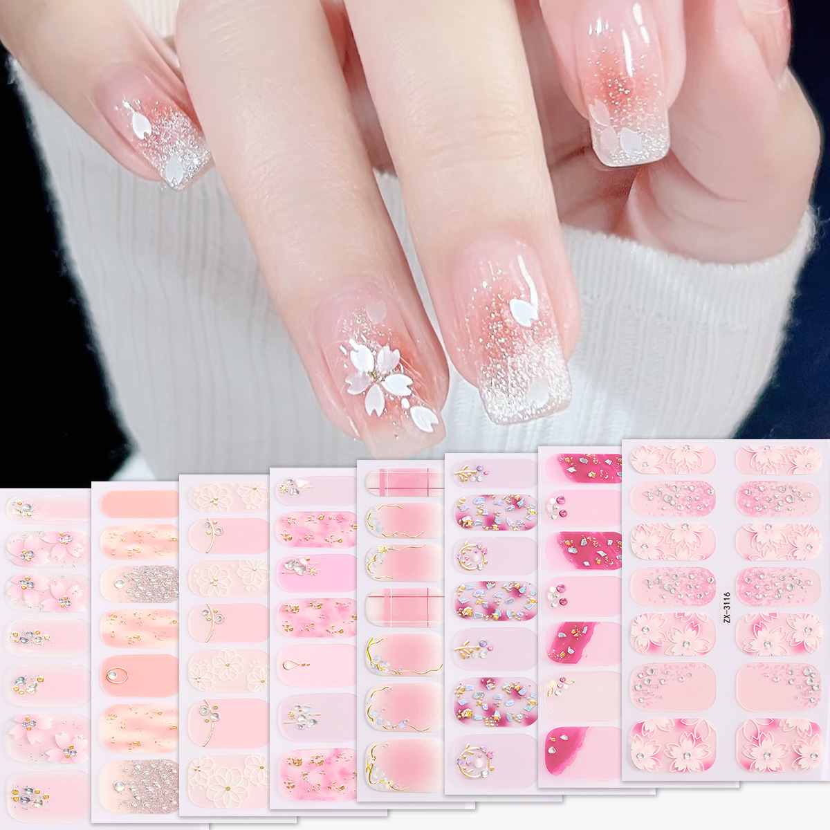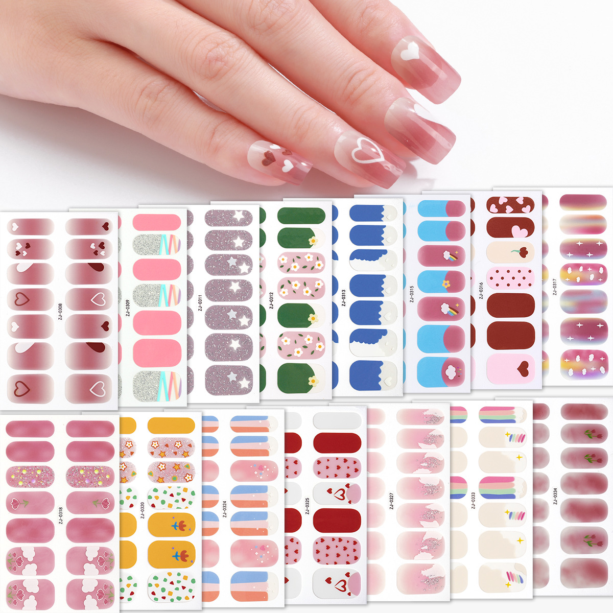 クロスボーダー専用ネイルポリッシュ16本指グラデーションネイルステッカーシンプル欧米風アマゾンネイルステッカー卸売
