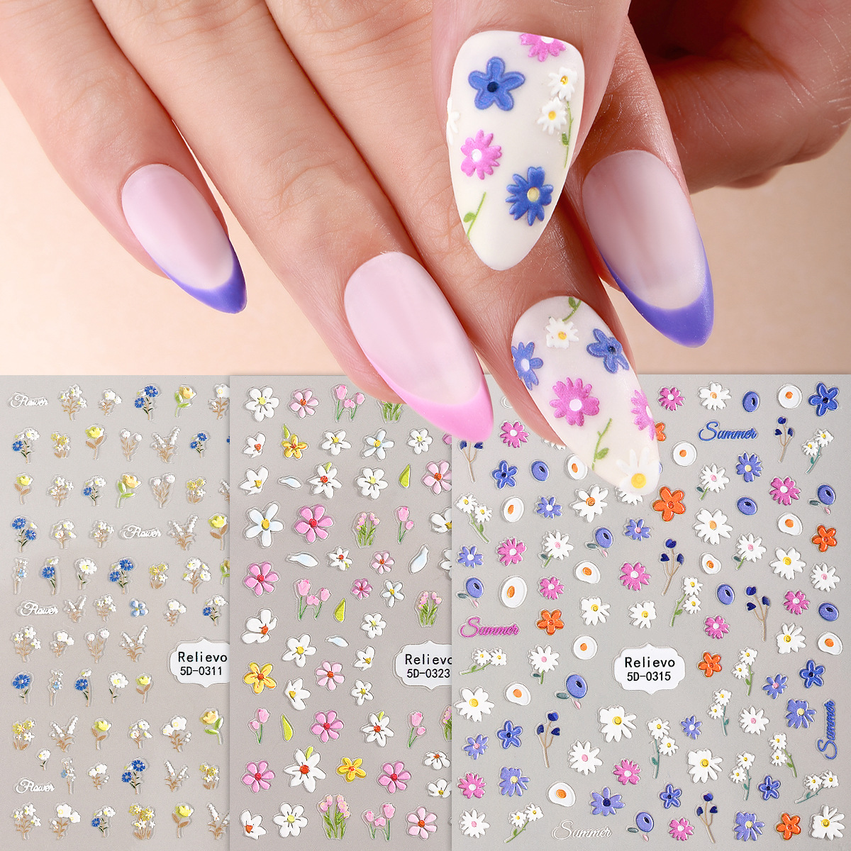 クロスボーダーinsネット赤爆金夏果物DIYネイルシール浮き彫り花小清新5Dソフトジェルネイル貼り