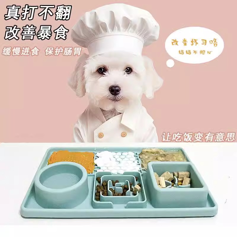 大型犬と小型犬用の犬用スローフードボウル、ツーインワン転倒防止犬用ボウル、ペットテディビション、窒息防止舐めマット、犬用プレート
