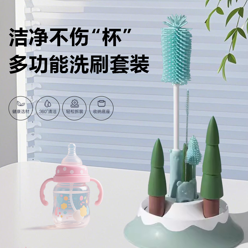 シリカゲル携帯哺乳瓶ブラシセット乳児洗浄哺乳瓶水切り収納ケース高密度死角なし取り外し可能洗浄