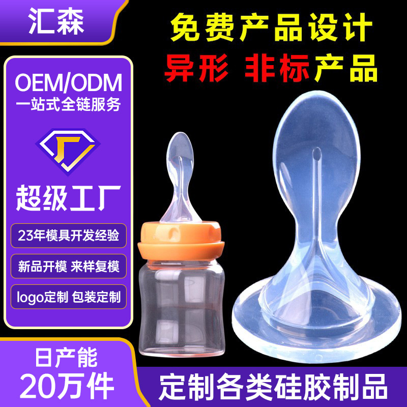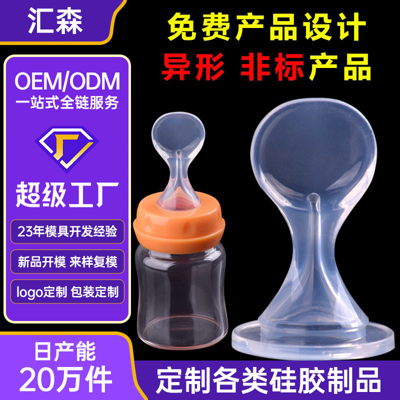 カスタムシリカゲル米ペーストスプーン製品異形品液体標準口哺乳瓶乳児補助食瓶スプーン頭型開き加工