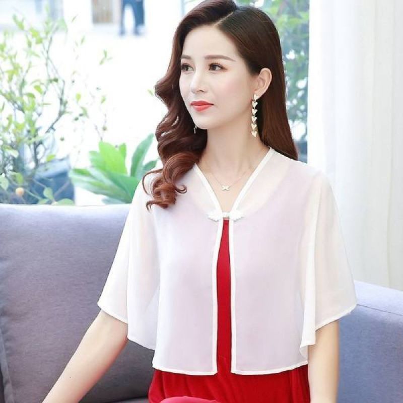 小さいショールの夏の新型のシフォンのコートの女性の短いカーディガンの日焼け止めの服はサスペンダーのスカートの外でゆったりしている上着を配合します。