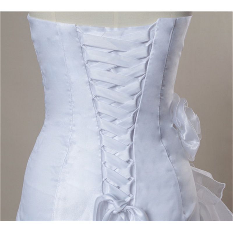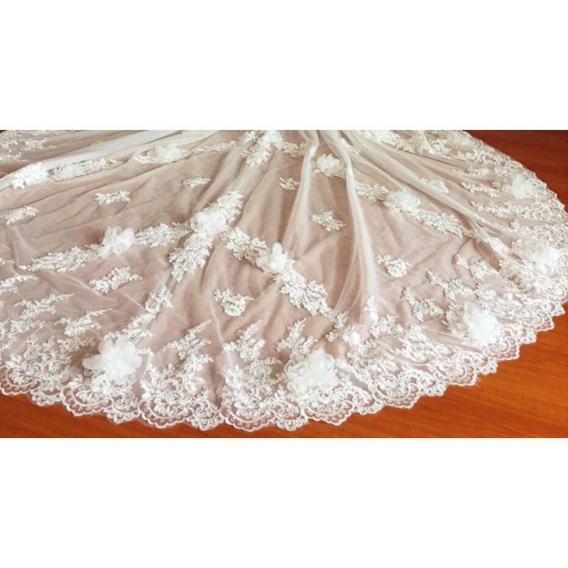 ウェディングドレスのアクセサリーの長い尾の大きいスカートはレースの花の蝶結びの花びらを飾ってウェディングドレスの服を外します。