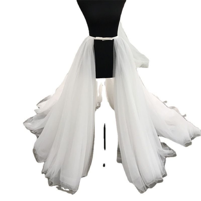 欧米風の新商品の網紗の蓬蓬のスカートの白い象牙色の半身のスカートのウエストはウェディングのガーゼのスカートの長いタイプを結んで尾を引いて歩きます。