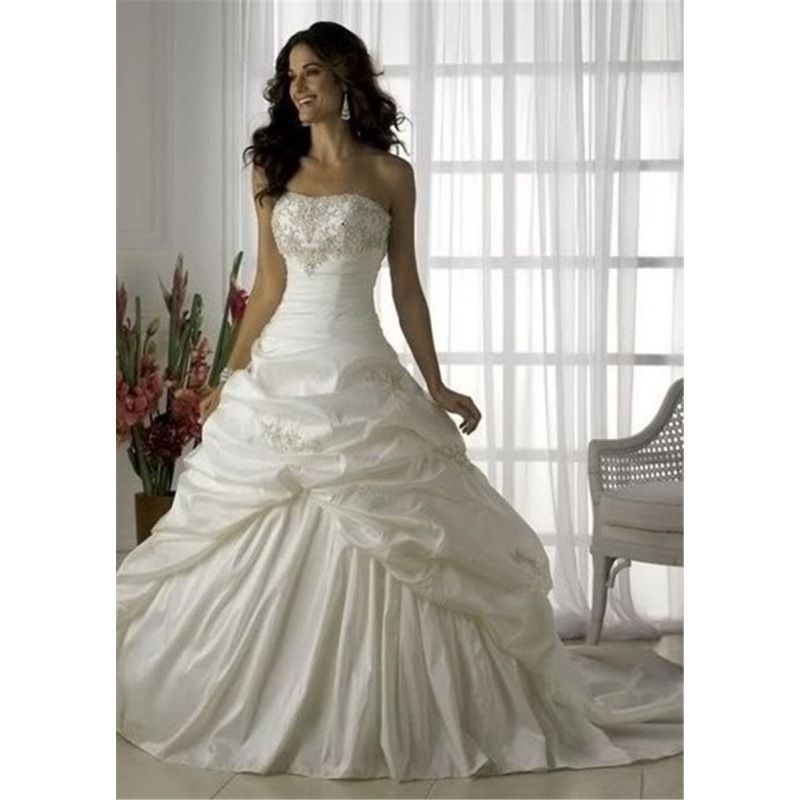 白い象牙色のタフタのウェディングドレス刺繍尾引き花嫁のウェディングドレスの後ろにストラップ工場が長年出荷されている