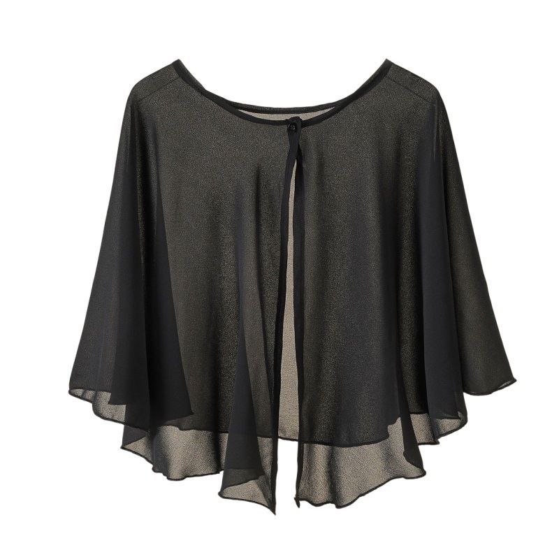 黒い女性はシフォンのショールのジャケットのシフォンのシャツの薄い秋の夏秋の女性の新婦のショールと小さいショールを持ちます。