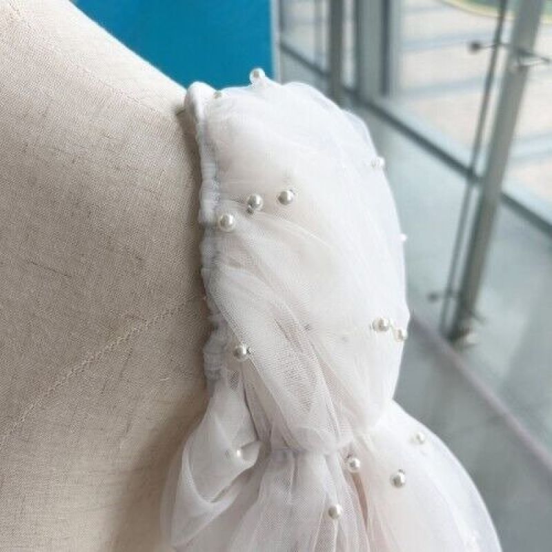 白い象牙色の欧根紗の小さいスカートのペンの卒業舞踏会の正式な場のバーの蓬蓬のスカートの校慶のワンピース
