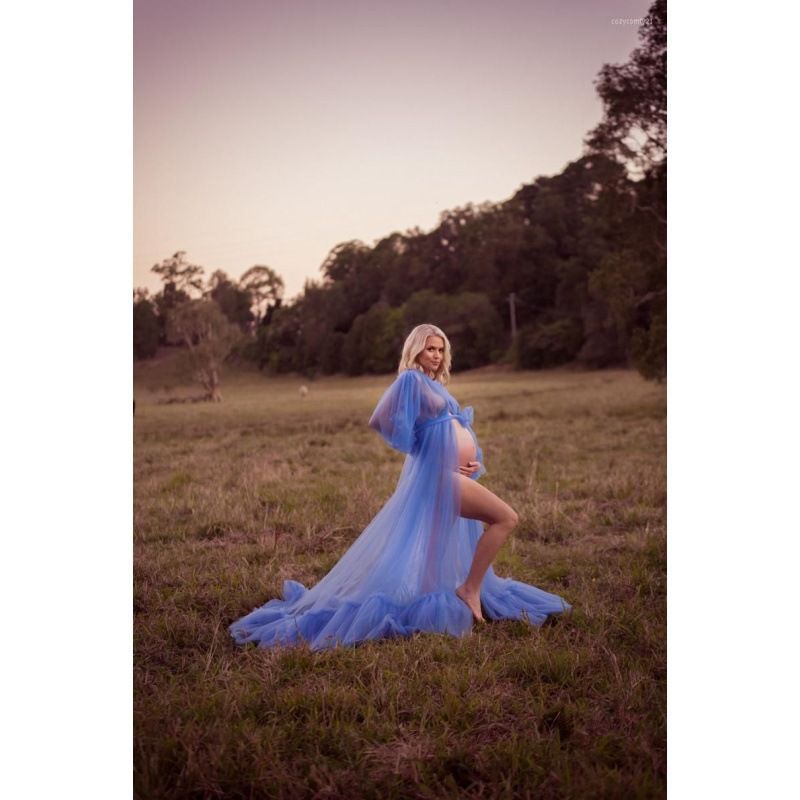欧米の寝スカートの妊婦の青いネットの糸の長いドレスの映画館の撮影の服装のネットの糸のスカートの夜のドレスのパジャマの女性
