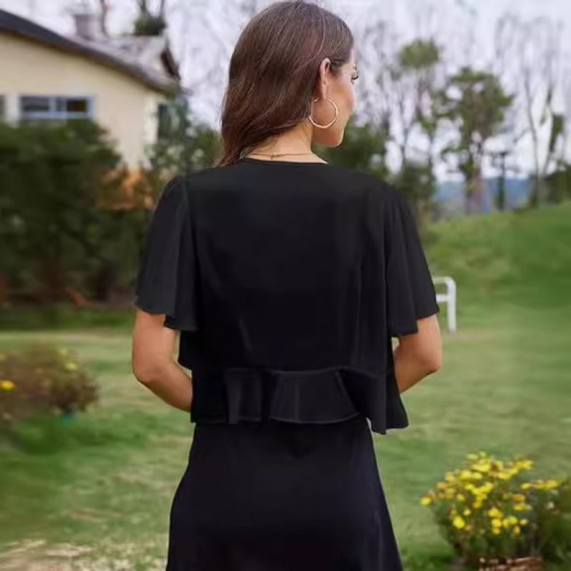 短いマントには薄い日焼け止め服の新しいシフォン女性が夏に袖付き白黒多色マントがついている