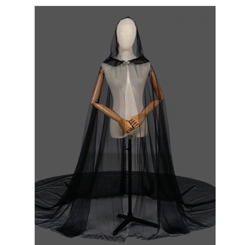 ハロウィンのマントの網の糸は帽子の長い型の尾のマントの女性のマントの演出服のマントの尾のマントのドリルボタンをつないでいます。